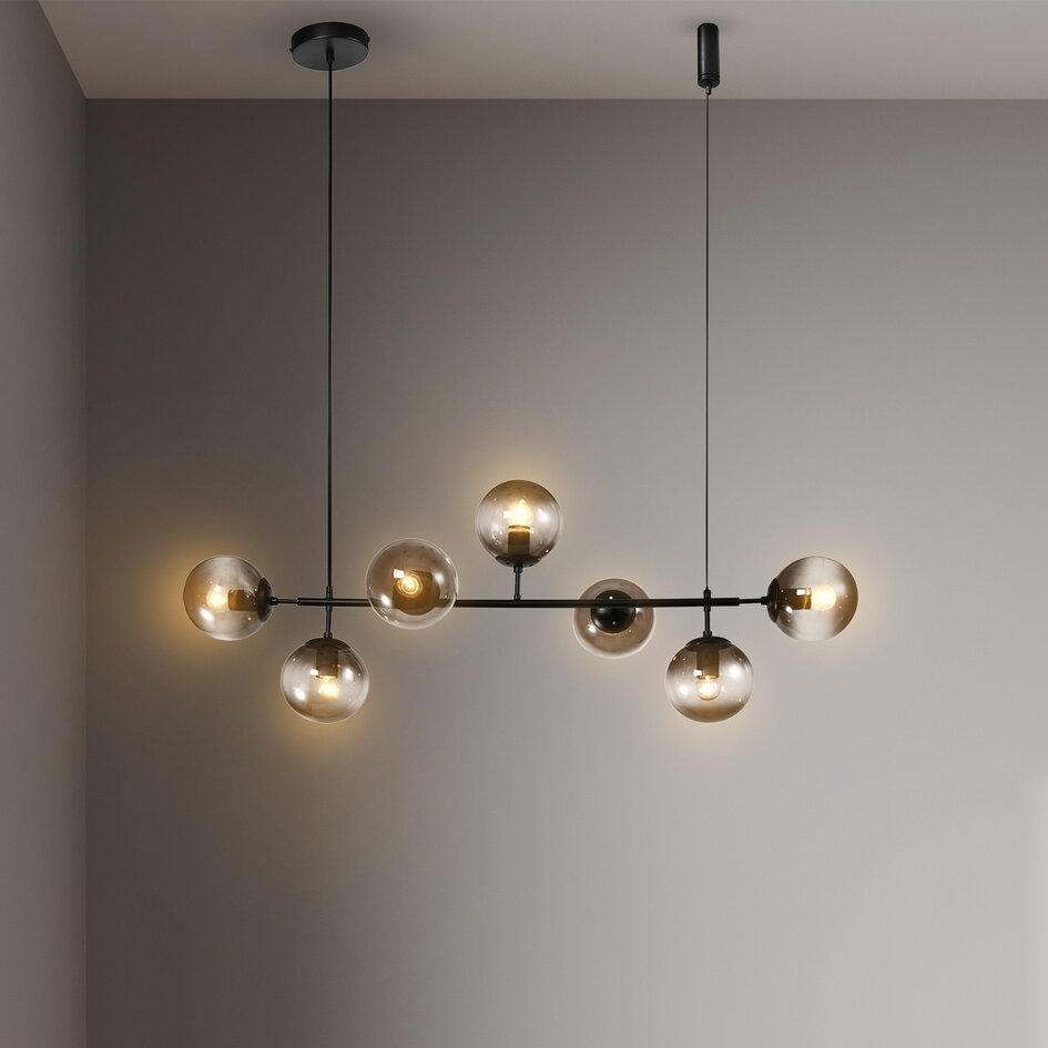 Review Designhänglampa Hepta rökglas